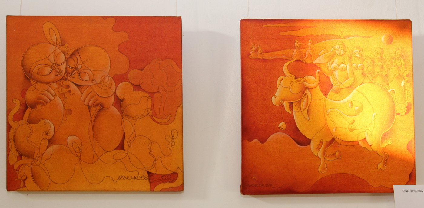 В выставке приняли участие художники из Индии - Балвант Сингх Балория, Джанг С. Верман, Мукта Гупта, доктор Вандана Мальхотра, доктор Алиша Шарма, Бхарат Беди, Прабхиндер Сингх Лалл, Харш Индер Лумба, Лиза, Сангита Шарма, Мехак Шарма, Сурбхи Махаджан, Шивали Джамвал, Комал Каур, Прия; из России – Людмила Кирсанова, Елена Яковлева, Ильмира Фаридонова, Надежда Кобзистова; а также Сюзли Ибрагим из Малайзии и Бандхита Ворасри из Таиланда.