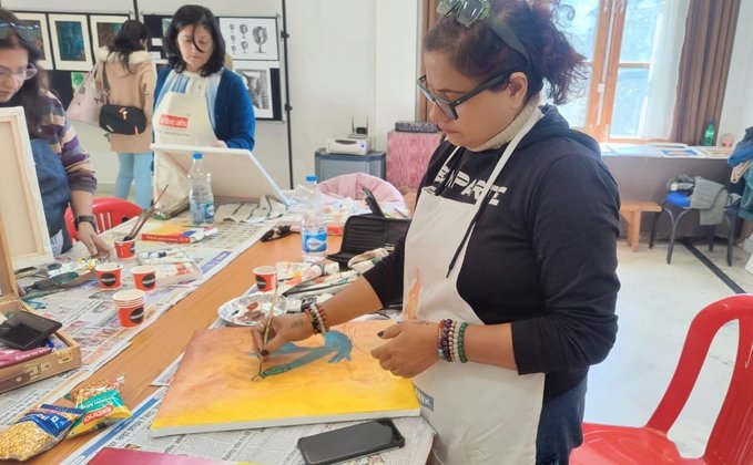 В дни работы выставки художники, которым удалось лично приехать в Наггар, организовали в Усадьбе Рерихов творческий лагерь, приглашая к участию в нем всех желающих. Д-р Вандана Мальхотра, координатор лагеря художников, предоставила честь открыть пленэр кураторам Треста Рерихов Ларисе Сургиной и Сурешу Кумару. Такие мероприятия часто проходят в ММТР, давая возможность посетителям прикоснуться к таинствам творческого процесса, а художникам – поделиться своими творческими находками.