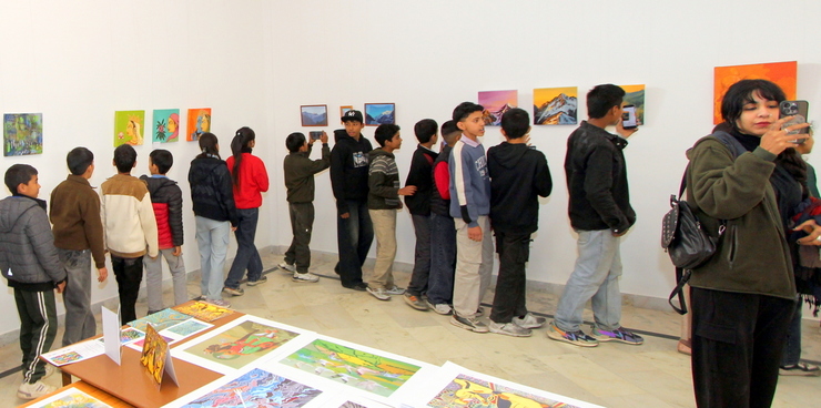 Особым подарком для художников стало посещение выставки большой группой индийских школьников. Познакомившись с Усадьбой семьи Рерихов, они с интересом посмотрели выставку современного искусства, во многом наследующего традиции выдающихся художников прошлого.