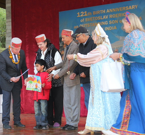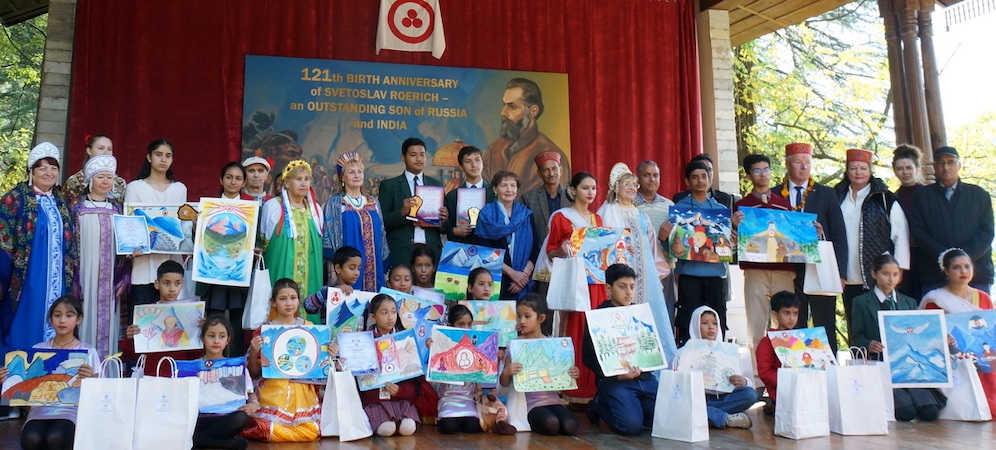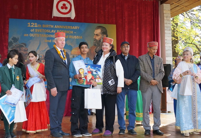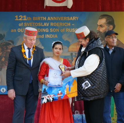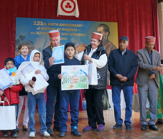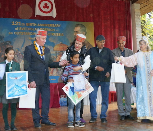 Дипломы, памятные призы и подарки из России победителям регионального и итогового международного этапа Фестиваля «Держава Рерихов» вручали почетные гости Треста Рерихов Владимир Сергеевич и Лариса Борисовна Околотины и координаторы Фестиваля, волонтеры МЦР Тамара Михайловна Мергес и Василий Николаевич Ткачев.