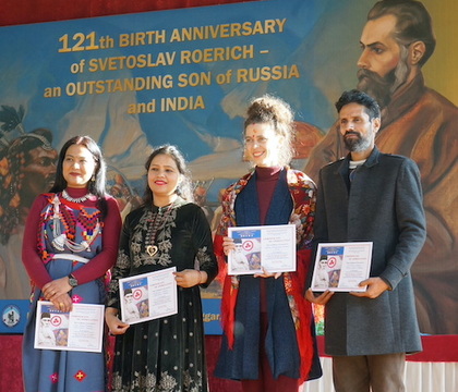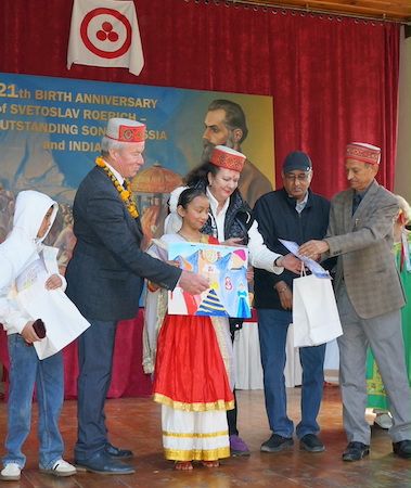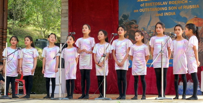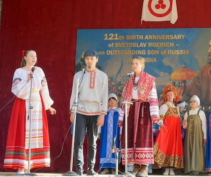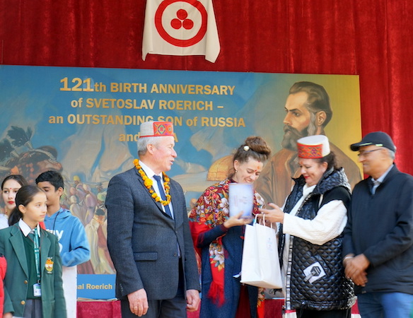 Программа началась с исполнения воспитанниками детской Академии искусств имени Е.И.Рерих традиционного гимна богине Сарасвати. После приветственной церемонии на сцену были приглашены кураторы ММТР: Индийский куратор Суреш Кумар и Российсий куратор Лариса Сургина, работающая в Тресте Рерихов по направлению МЦР. В своем выступлении они тепло поприветствовали гостей и участников фестиваля и подчеркнули, что в наше непростое время обращение к идеям семьи Рерихов становится особенно актуальным. Они отметили, что традиционные октябрьские мероприятия в ММТР служат прочным культурным мостом между Индией и Россией, активно поощряя международное сотрудничество ради общего благого дела. Святослав Николаевич Рерих не случайно создал две организации — Международный Центр Рерихов (МЦР) в Москве и Международный Мемориальный Трест Рерихов (ММТР) в Наггаре. Их всестороннее взаимодействие является ключевым залогом выполнения заветов великой семьи.