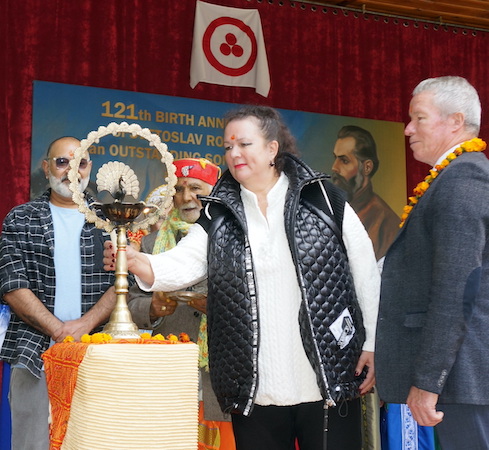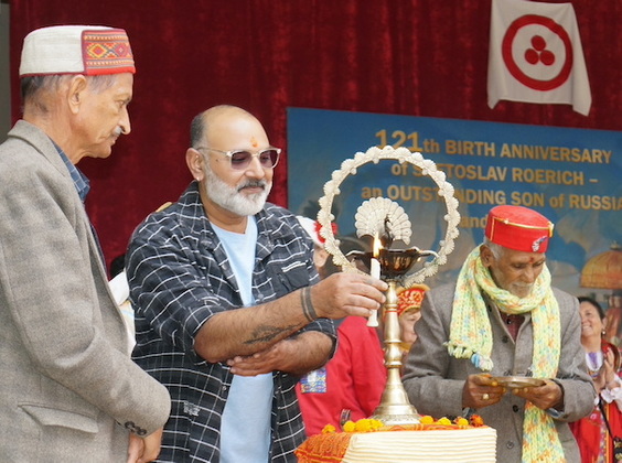 Праздничные мероприятия традиционно открылись шанти-пуджей – священным ритуалом, который можно по праву назвать обрядом мира. Ее провел Шри Джайдев Ачарья, пуджари из древнего наггарского храма Кришны, подчеркивая неразрывную связь семьи Рерихов с индийской культурой и традициями долины Кулу.