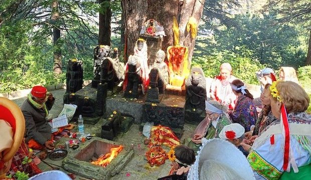 Шанти-пуджа прошла в уникальном храме-музее под открытым небом рядом с Домом Рерихов. Здесь, под сенью могучей четырехствольной сосны, находится почитаемая статуя Гуга Чохана – божества, героя и покровителя долины Кулу. Найденная Рерихами на территории Института «Урусвати», она запечатлена на полотнах Николая Константиновича. Во время пуджи яркие солнечные лучи золотили священные статуи-мурти, а за ними открывался величественный и вдохновляющий фон: сверкающий заснеженный двойной пик горы Гепанг - горы М, как называли Гепанг Рерихи, - символ чистоты и высших побуждений. Таким образом, обряд мира в Наггаре стал мощным знаком единения индийских традиций, русского наследия и универсальных идей Пакта Рериха.