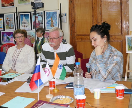 В начале заседания с приветственным словом выступили Суреш Кумар, Индийский куратор ММТР, и Лариса Вениаминовна Сургина, Российский куратор, сотрудница Международного Центра Рерихов (Москва). От имени Треста они поприветствовали участников и гостей Конференции, выразив надежду, что животрепещущая тема защиты культуры, которая близка всем присутствующим, позволит участникам по-новому взглянуть на пророческие идеи Николая Константиновича Рериха и осознать их критическую, неоспоримую актуальность для исцеления и гармонизации нашего неспокойного современного мира. Модератором и переводчиком конференции была доктор Ольга Валерьевна Карасева, ученый, востоковед, помощник Российского куратора ММТР, сотрудник МЦР.