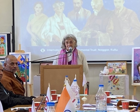 Тамара Михайловна Мергес, руководитель группы волонтеров Международного Центра Рерихов (МЦР) и координатор Международного Фестиваля детско-юношеского творчества «Держава Рерихов», поделилась бесценным опытом работы с юным поколением и рассказала о плодотворном международном сотрудничестве, которое стало основой успеха Фестиваля. Тамара Михайловна подчеркнула, что фестиваль «Держава Рерихов» организован Международным Центром Рерихов (МЦР, Москва) в тесном партнерстве с Международным Мемориальным Трестом Рерихов (ММТР) в Наггаре (Индия). Это сотрудничество обеспечивает прямую связь с местом жизни и творчества Рерихов в Гималаях. Второй по счету фестиваль, состоявшийся в 2025 году и посвященный знаменательной дате — 90-летию подписания Пакта Рериха, приобрел широкий международный размах, объединив творчество детей, школьников и студентов из шести стран. Фестиваль получил мощный отклик в Индии, где в четырех творческих номинациях приняли активное участие учащиеся общеобразовательных школ долины Кулу, воспитанники Детской Академии искусств имени Е.И.Рерих (ММТР), а также студенты престижного Университета имени Джавахарлала Неру (Дели). Особое внимание докладчица уделила участию в Фестивале Санкт-Петербургской государственной художественно-промышленной академии имени А.Л.Штиглица (Россия). Будучи соорганизатором фестиваля, Академия предоставила работы своих студентов для участия в выставке детских работ «Под Знаменем Мира», торжественно открытой накануне в Конференц-зале ММТР. Выставка стала зримым доказательством того, что идеи Рериха о защите Культуры живы и продолжают вдохновлять новое поколение художников и мыслителей по всему миру.