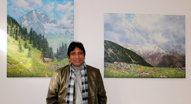 Навин Кумар из города Хошиарпура, чьи акварели уже давно полюбились многим посетителям ММТР, остался верен горным пейзажам Гималаев. Но, кроме живописных пейзажей, он также представил в экспозиции свои работы на философские и религиозные темы, выполненные акварельными, масляными и акриловыми красками.
