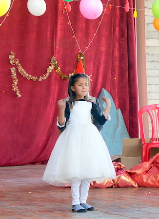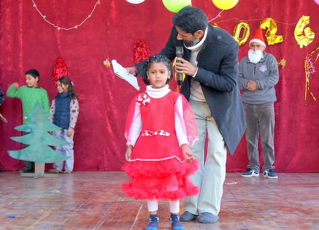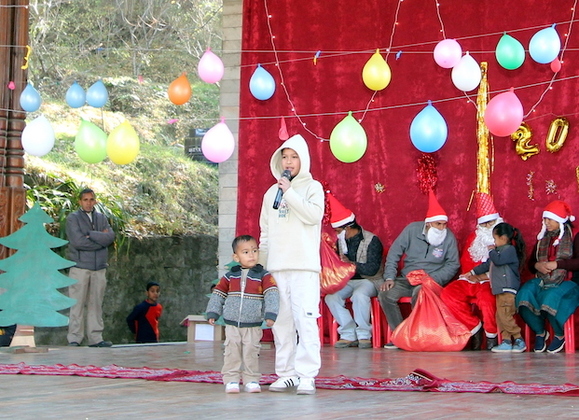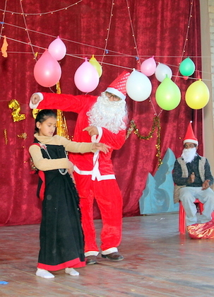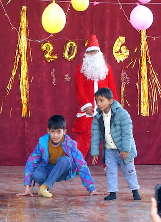 Этот год не стал исключением. И хотя декабрь в Кулу выдался абсолютно бесснежным, сухим и довольно теплым, но дух Рождества ощущался в Усадьбе Рерихов как-то по-особенному празднично. С утра около 400 девчонок и мальчишек собрались на площадке Зеленого Театра ММТР, где уже звучали рождественские и новогодние песни на разных языках, красовалась новогодняя елочка и светился огоньками занавес. Самые маленькие гости, ожидая начала программы, разглядывали игрушки на елке и танцевали на сцене, ребята постарше общались с друзьями, неподалеку стояли родители, заражаясь общим радостным настроением.